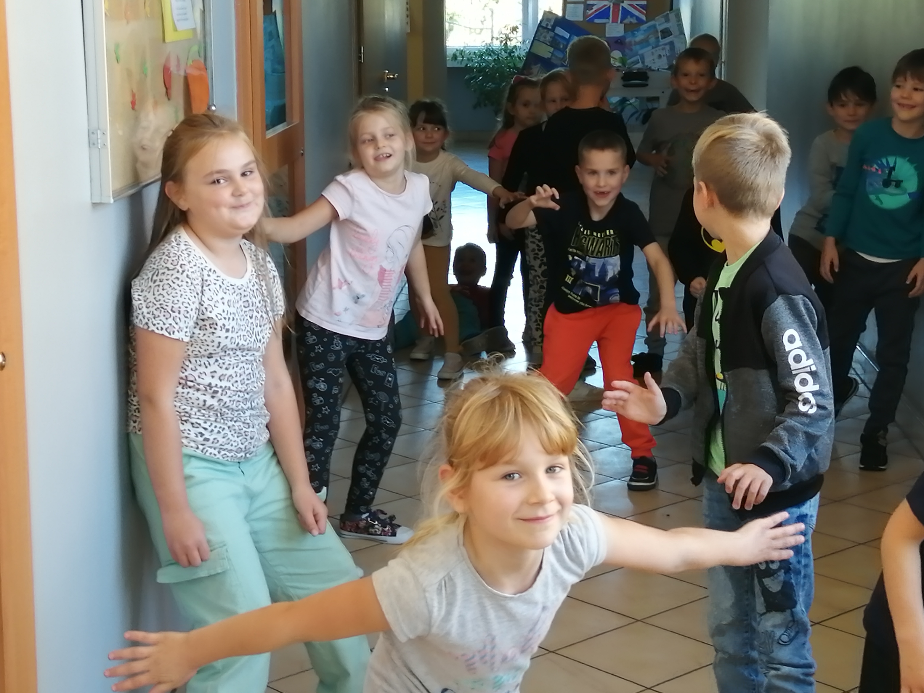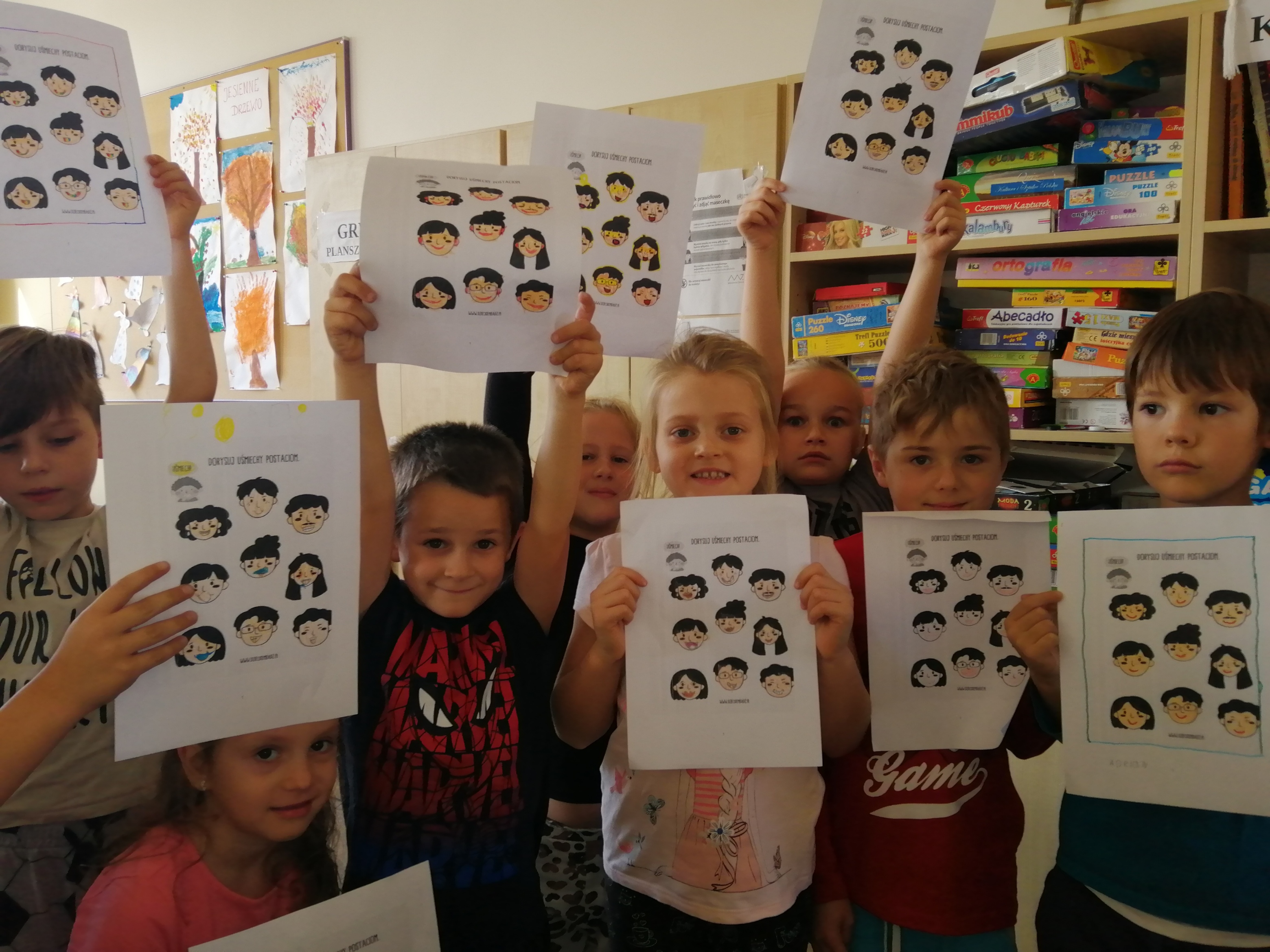 W świetlicy szkolnej robiliśmy różne rzeczy, które wywoływały uśmiech na twarzach świetliczaków. Na samym początku była rozmowa na temat emocji towarzyszących usmiechom i tego, co sprawia, że się uśmiechamy. Potem rozpoczęliśmy nasze zabawy od wesołej piosenki Louisa Primy " When you're smiling". Po włączeniu muzyki dzieci pokazywały tańcem sposoby w jaki się czują, gdy się uśmiechają. Potem nastąpiło wiele gier i zabaw typu: "Uśmiechnięty pomidor", "Bar kanapkowy" czy też "Uśmiechnięty mikrofon". Na koniec były gry ruchowe: "Zabawa w gilgotkowego potwora" oraz "Zabawa w przesyłanie uśmiechu". Na zakończenie tego święta dzieci usiadły do kart pracy, których zadaniem było dorysowywanie uśmiechów różnym postaciom. To był dzień pełen zabaw i uśmiechów!