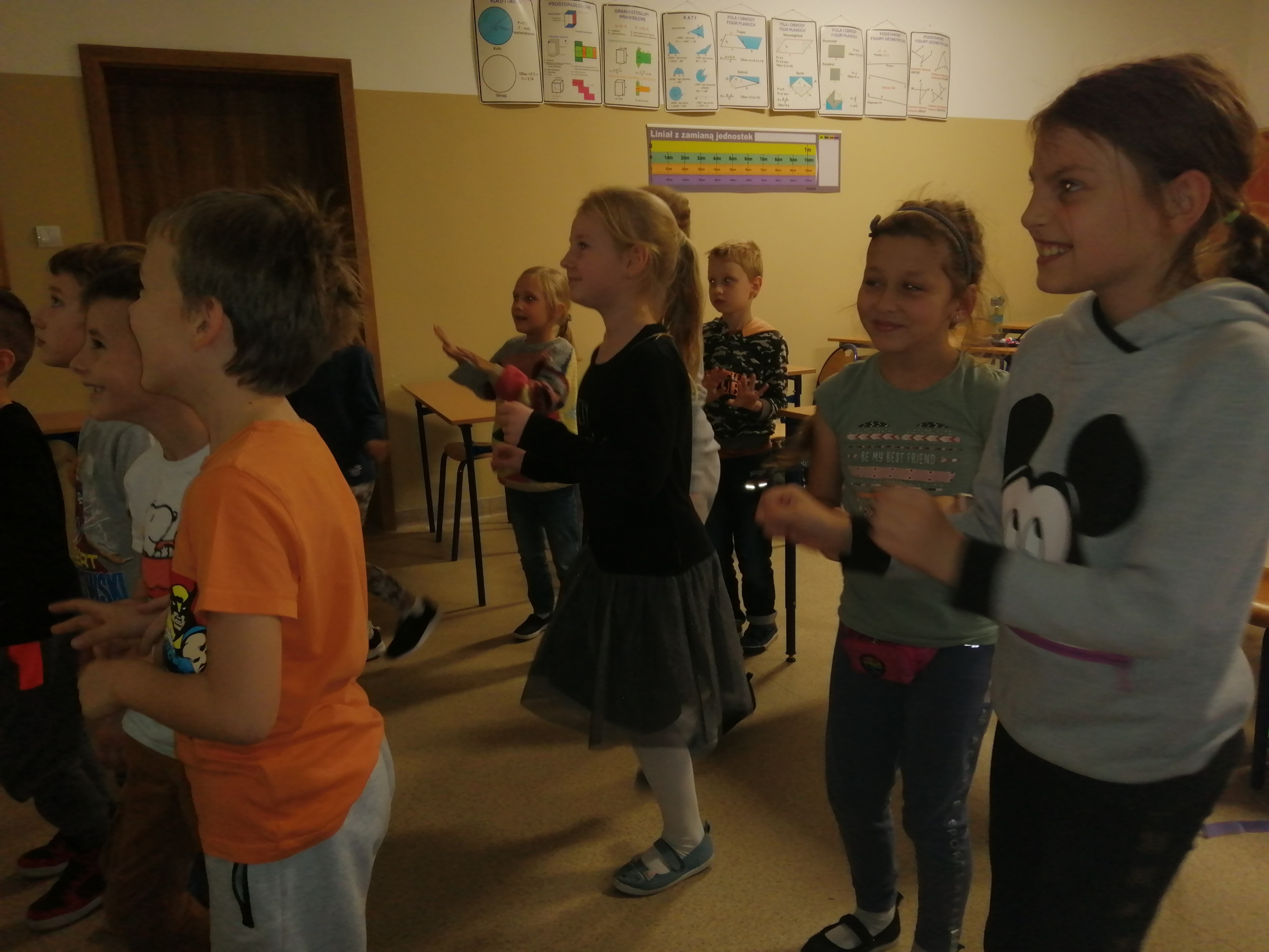 Część dzieci w dniu dzisiejszym miała na sobie ubrania z motywem Myszki Miki. Zabawom również nie było końca - w poszukiwanie rzeczy należących do Miki, odgadywanie jej przyjaciół po opisach, rozwiązywanie zagadek oraz rysowanie postaci Mickey Mouse. Świetliczaki nauczyły się również tytułowego tańca "Hej ho' z Klubu Przyjaciół Myszki Miki, a następnie go wspólnie odtańczyły. Na zakończenie odbyła się sesja zdjęciowa jako Miki lub Mini. Dzień z pewnością można zaliczyć do bardzo udanych!