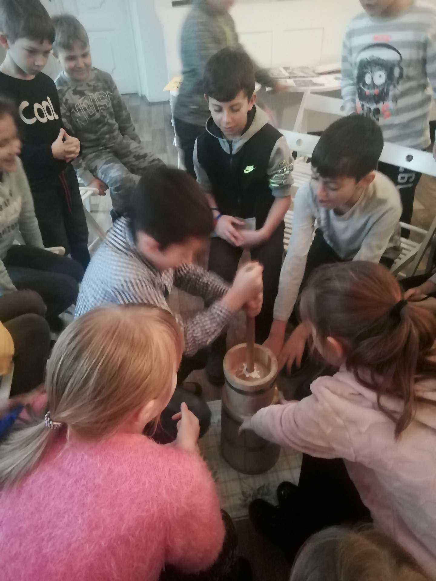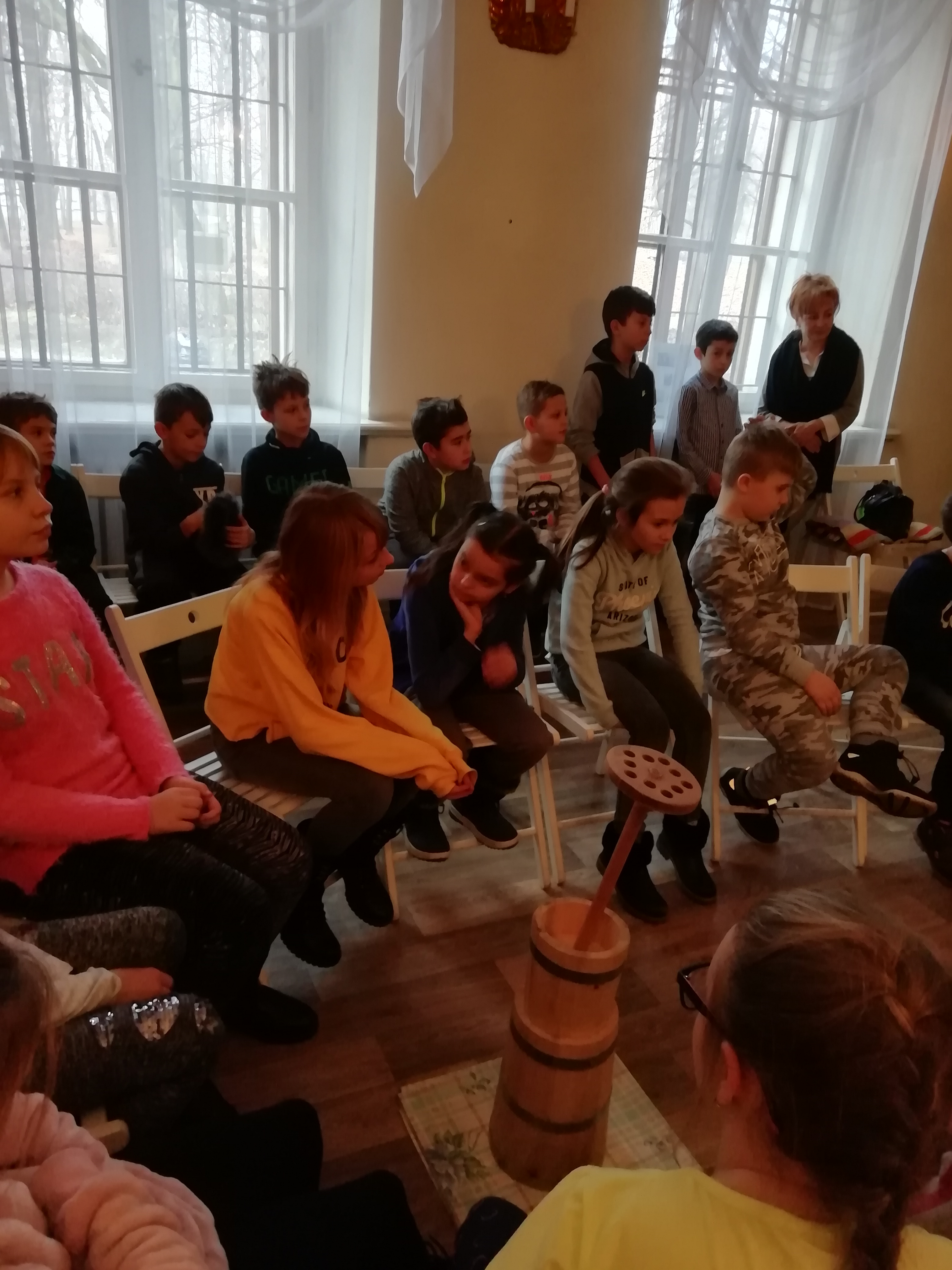 Panie Martina i Carmina towarzyszyły uczniom klasy 4a w warsztatach w Izbie Zagłębiowskiej w Będzinie. W czasie lekcji muzealnej miały okazję do poznania naszego regionu oraz próbowały swych sił w trakcie wyrabiania masła.